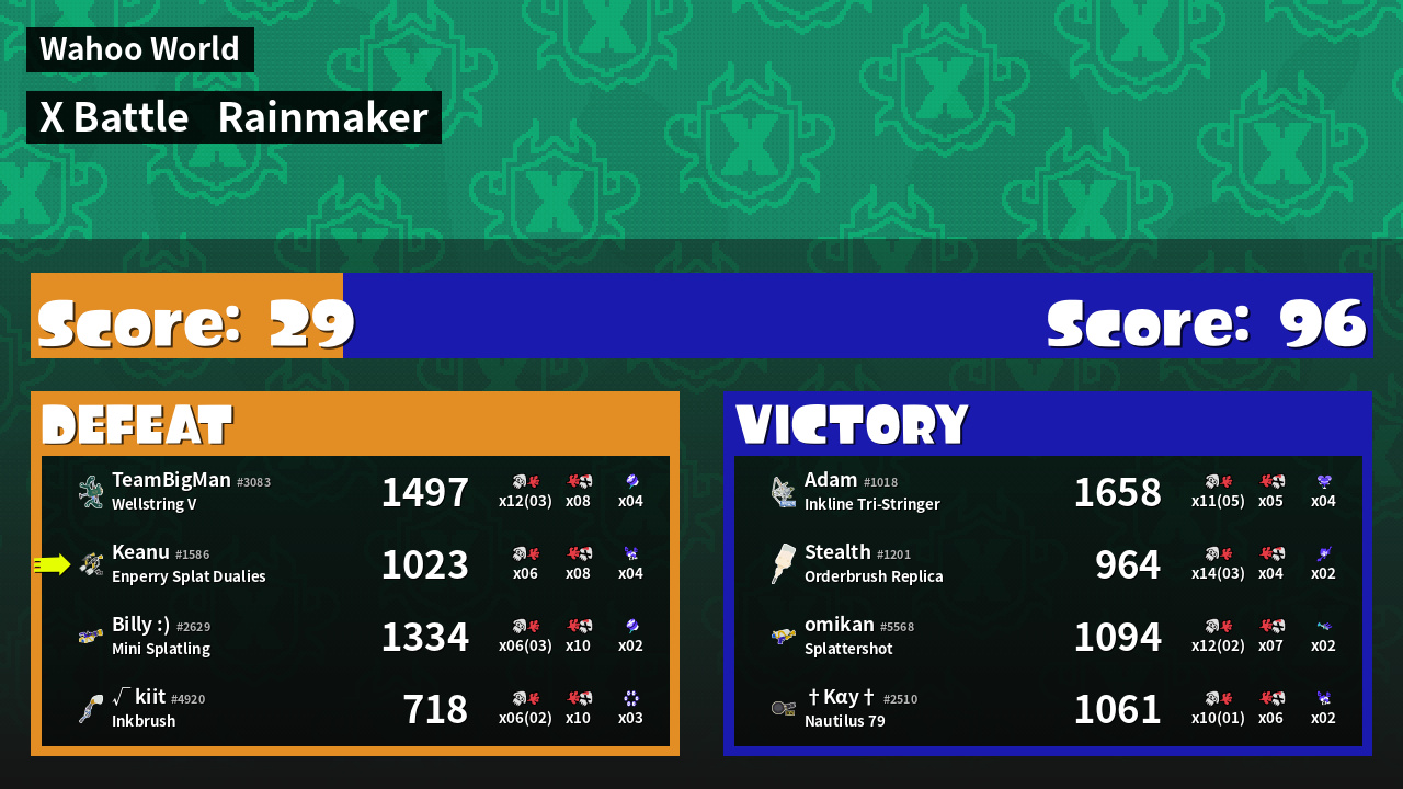 | Weapon | Enperry Splat Dualies ( Curling Bomb / Triple Splashdown) | ||