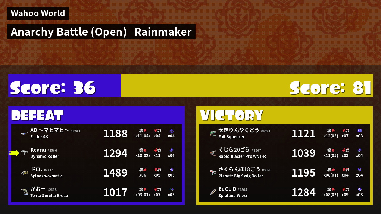 | Mode | Rainmaker - Anarchy Battle (Open) | ||