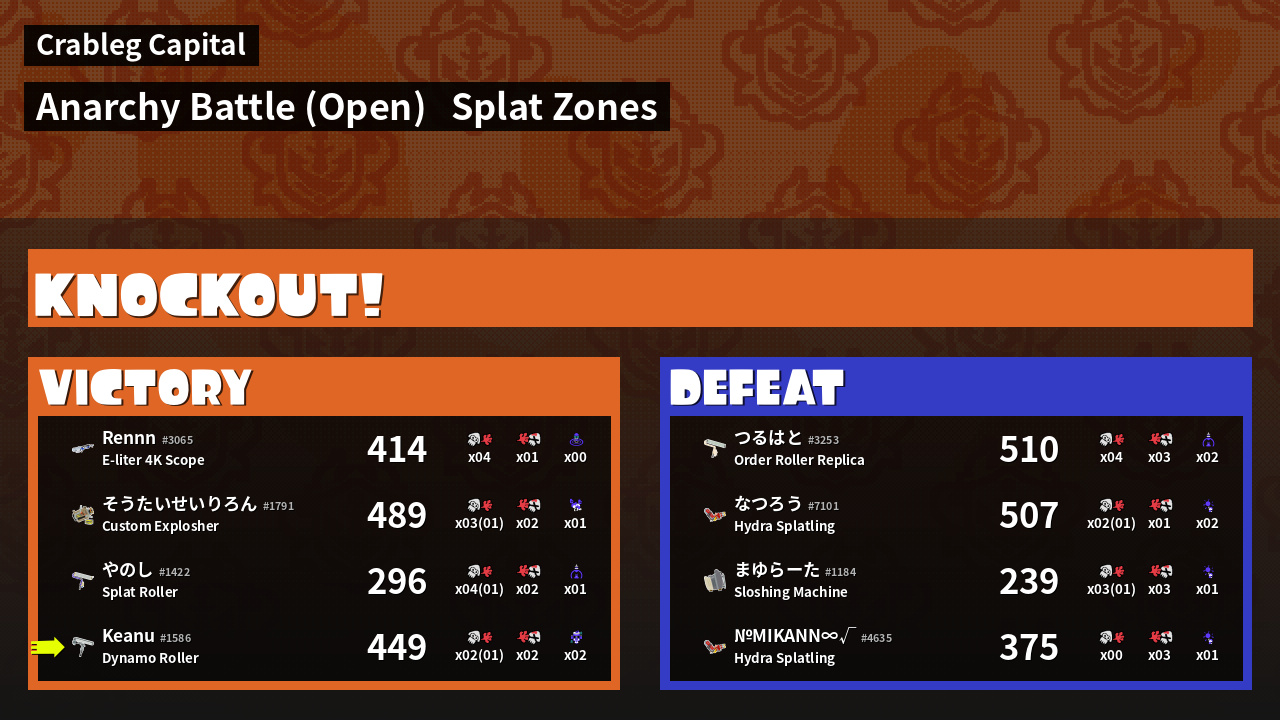 | Mode | Splat Zones - Anarchy Battle (Open) | ||