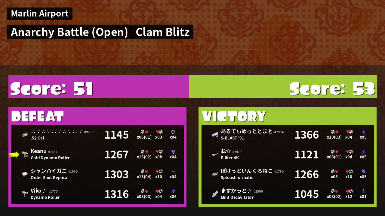 | Mode | Clam Blitz - Anarchy Battle (Open) | ||