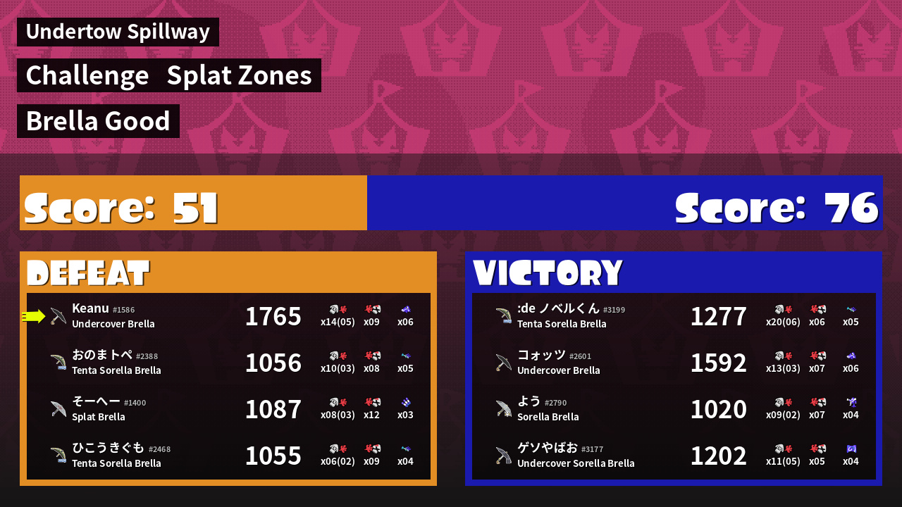 | Medals | #1 Overall Splatter #1 Splat Zone Inker #1 Splat Zone Guard | ||