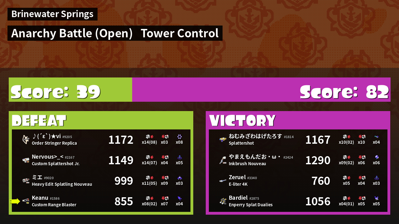| Mode | Tower Control - Anarchy Battle (Open) | ||