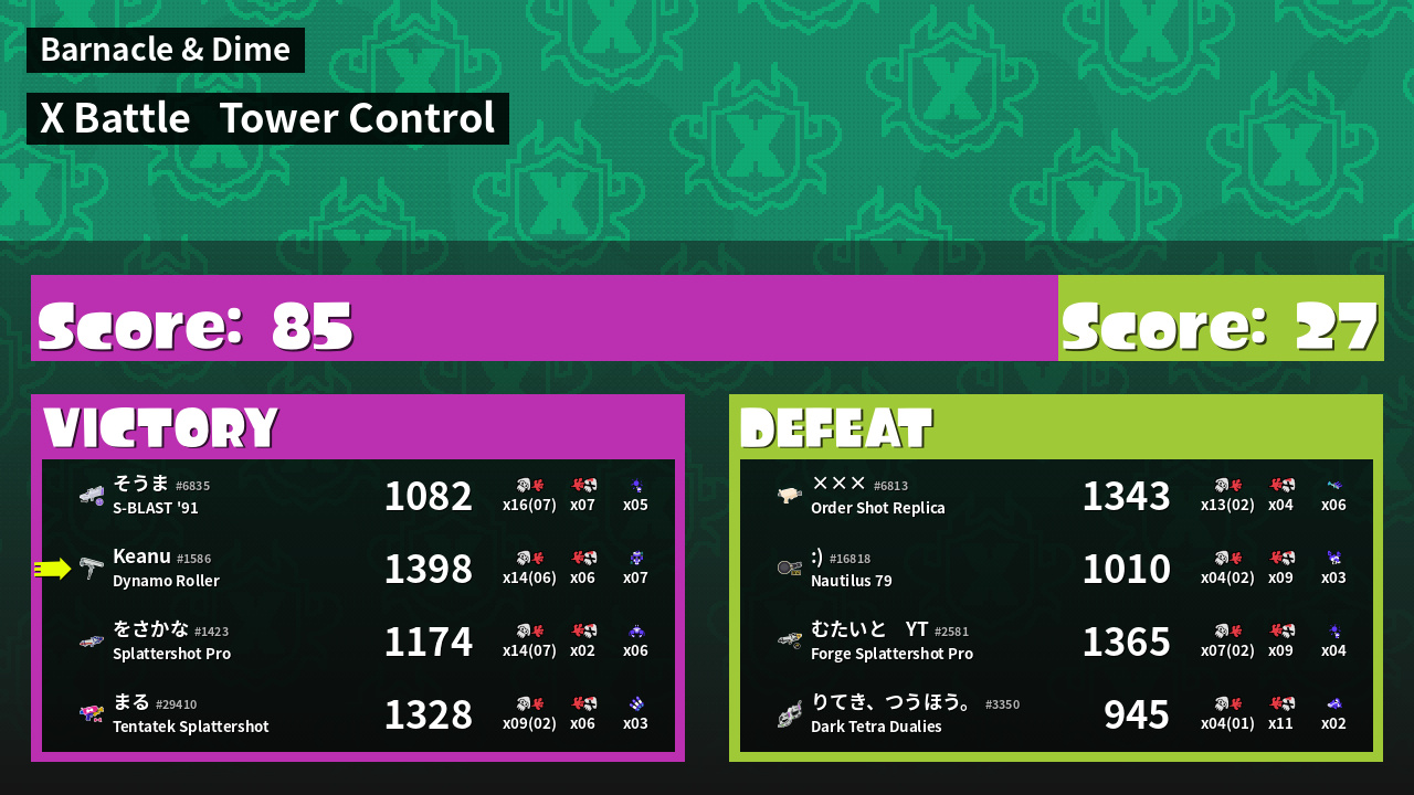| Mode | Tower Control - X Battle | ||