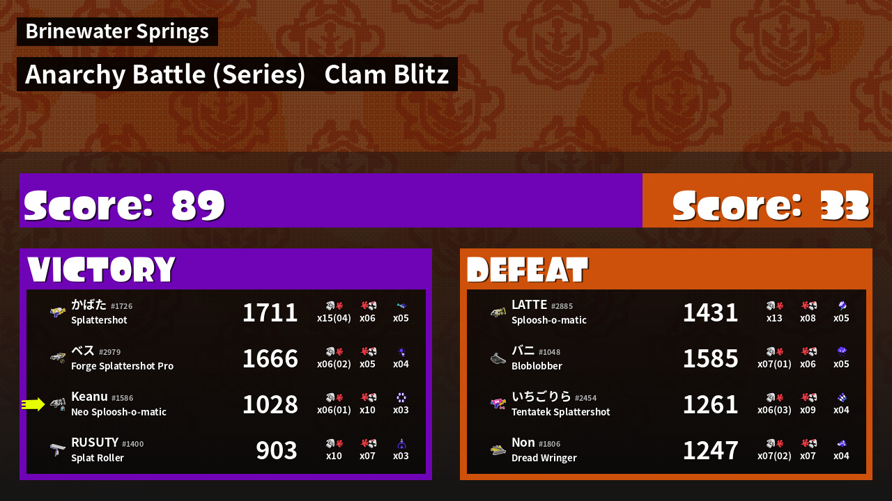 | Mode | Clam Blitz - Anarchy Battle (Series) | ||