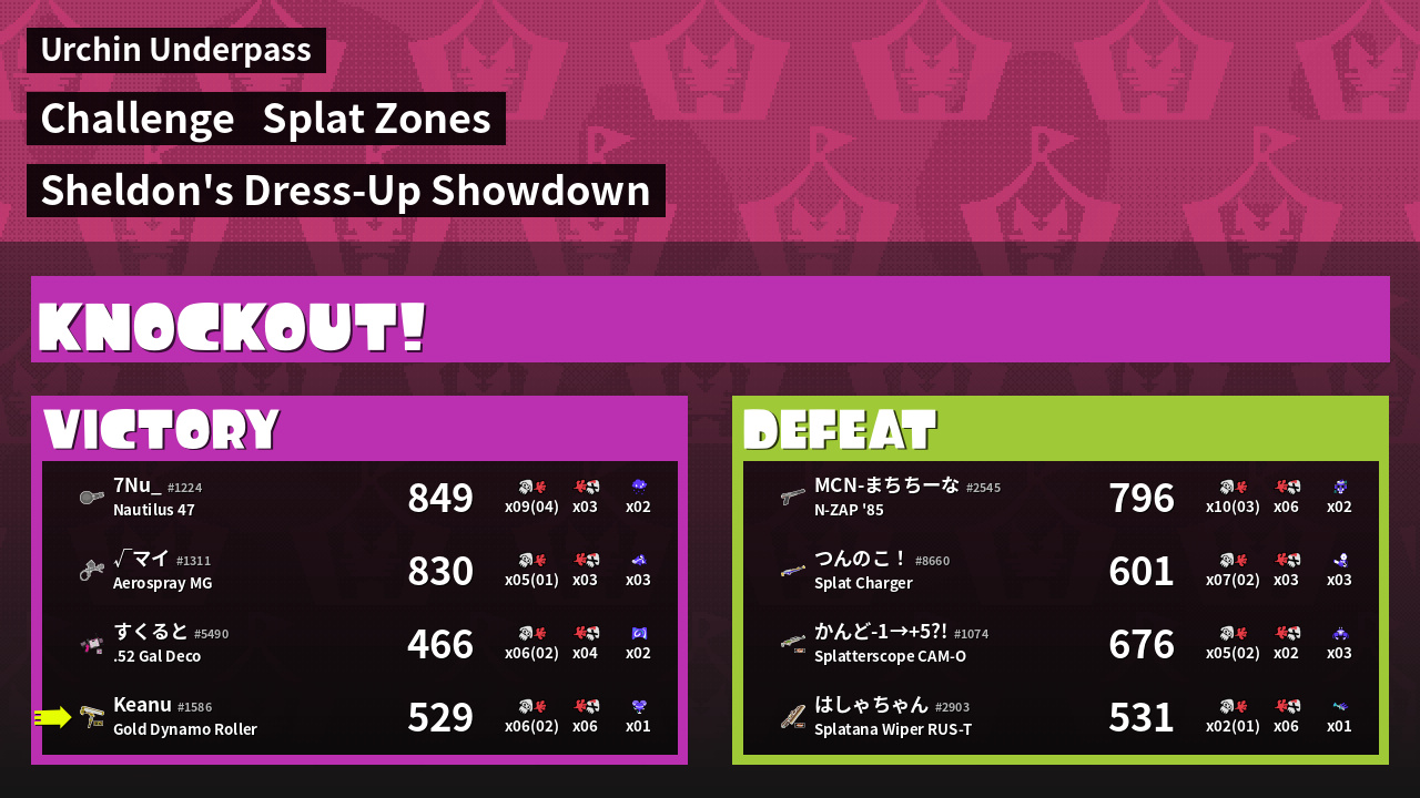 | Medals | #1 Ink Consumer #1 Super Chump User #2 Overall Splatter | ||
