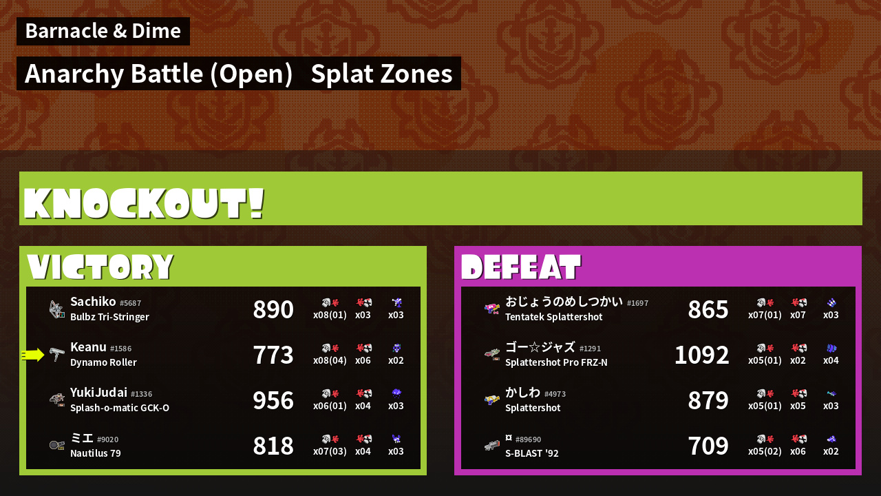 | Mode | Splat Zones - Anarchy Battle (Open) | ||