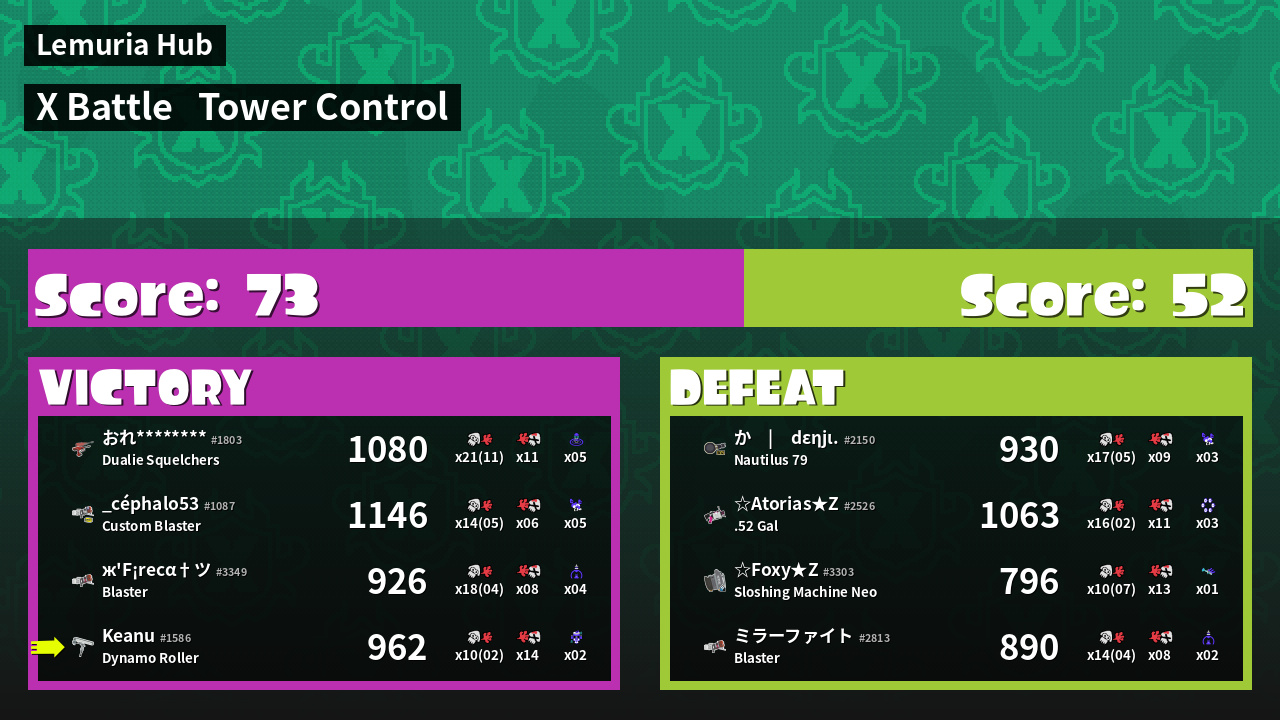 | Mode | Tower Control - X Battle | ||