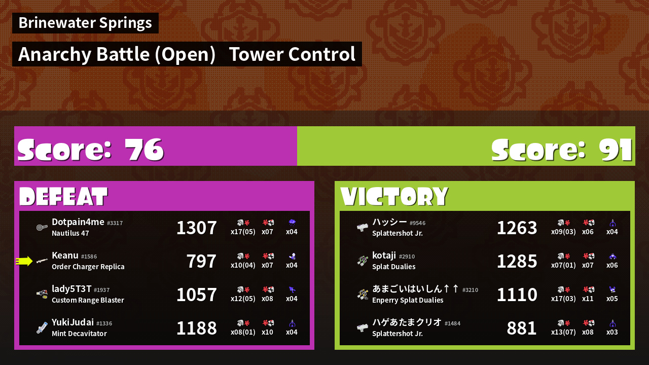 | Mode | Tower Control - Anarchy Battle (Open) | ||