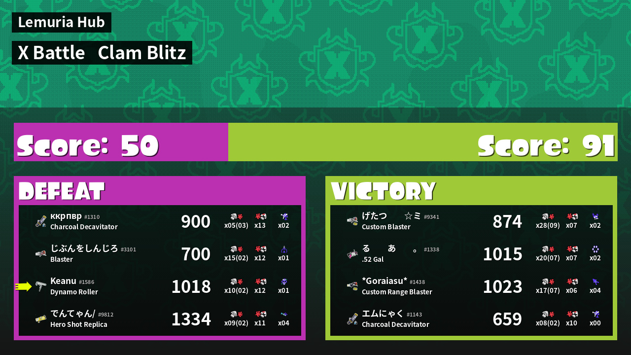 | Mode | Clam Blitz - X Battle | ||