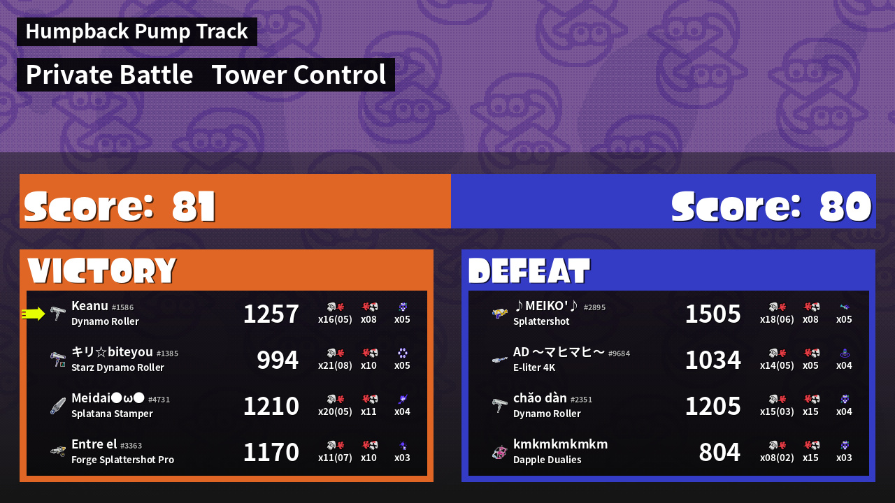 | Weapon | Dynamo Roller ( Sprinkler / Tacticooler) | ||