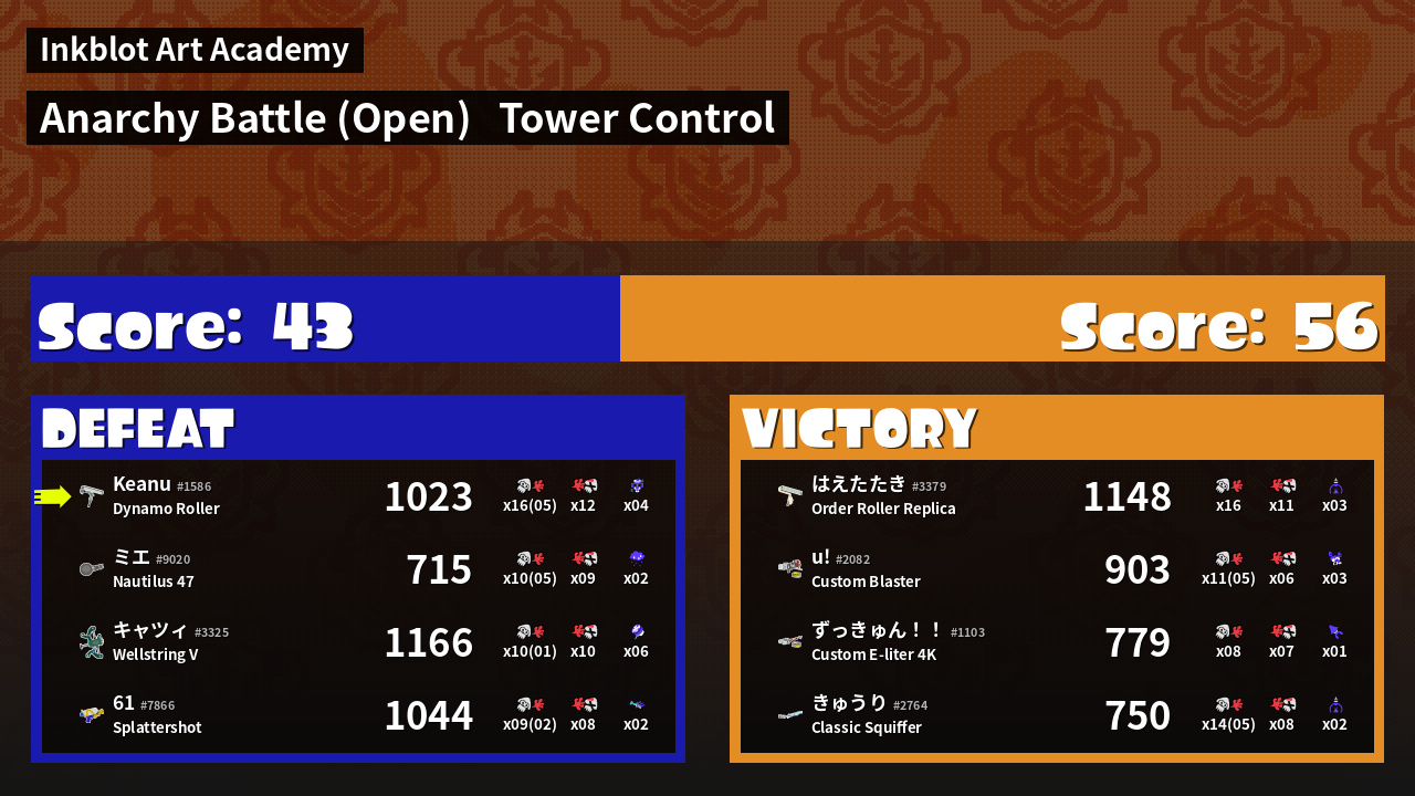 | Mode | Tower Control - Anarchy Battle (Open) | ||