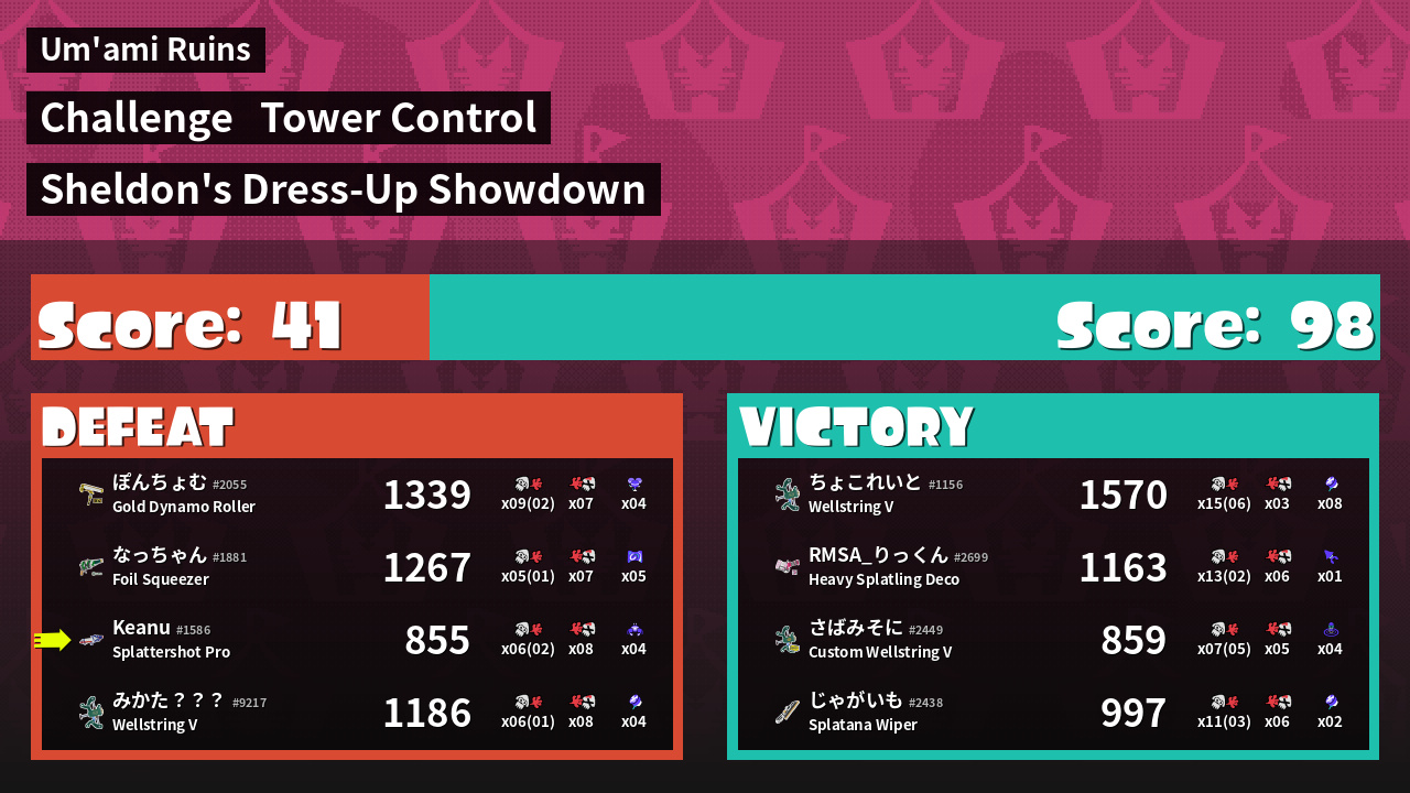 | Medals | #1 Super Jump Spot #1 Splat Assister #1 Tower Stopper | ||