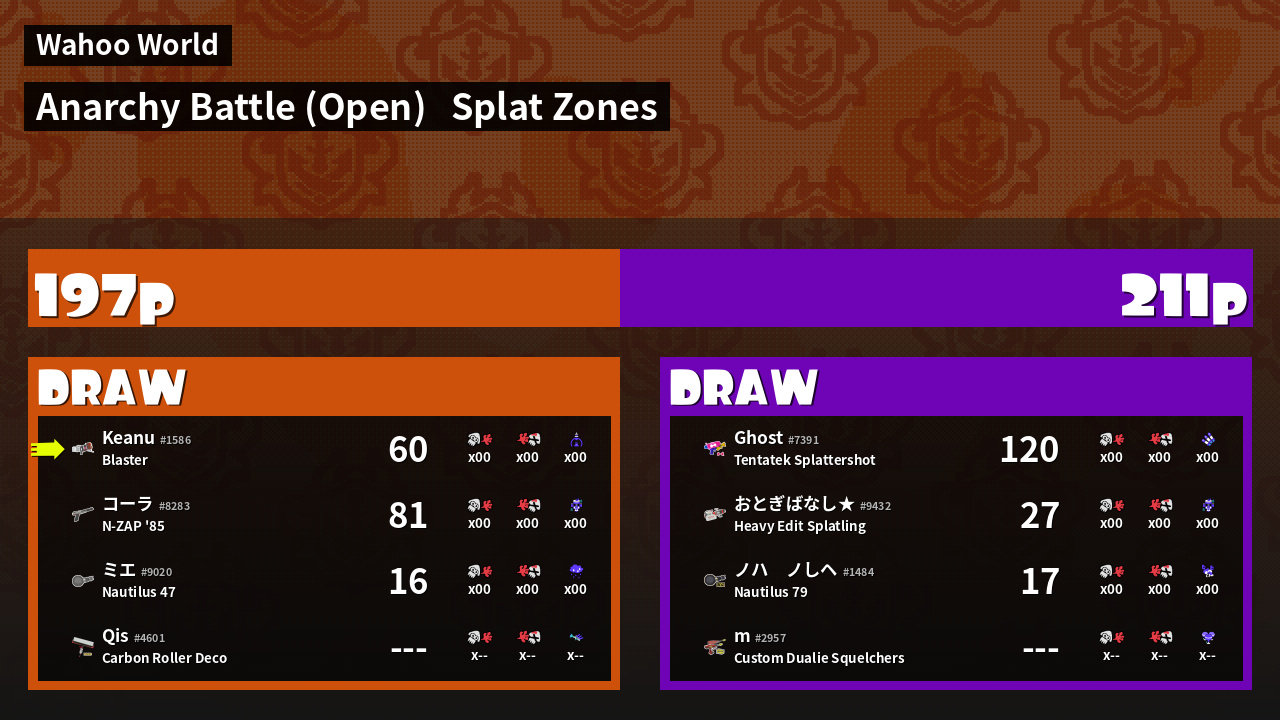 | Mode | Splat Zones - Anarchy Battle (Open) | ||