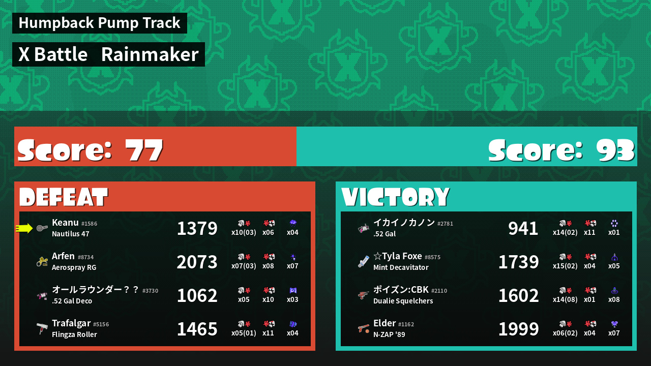 | Mode | Rainmaker - X Battle | ||