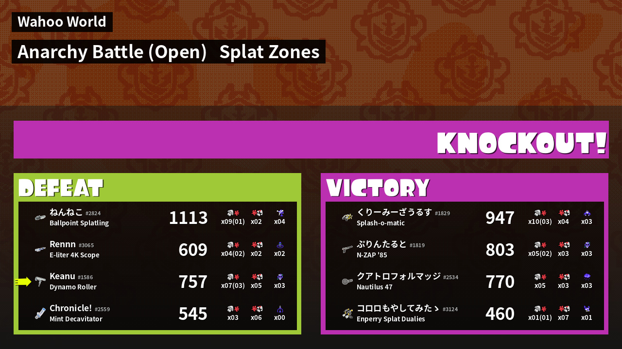 | Mode | Splat Zones - Anarchy Battle (Open) | ||