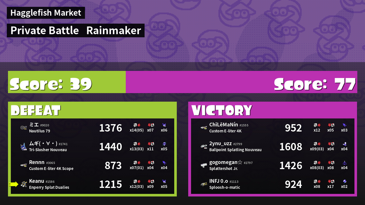 | Weapon | Enperry Splat Dualies ( Curling Bomb / Triple Splashdown) | ||