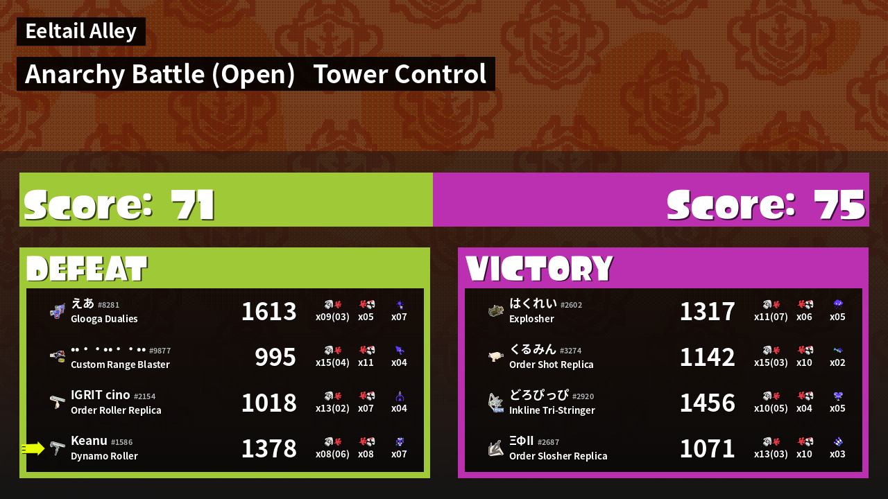 | Mode | Tower Control - Anarchy Battle (Open) | ||