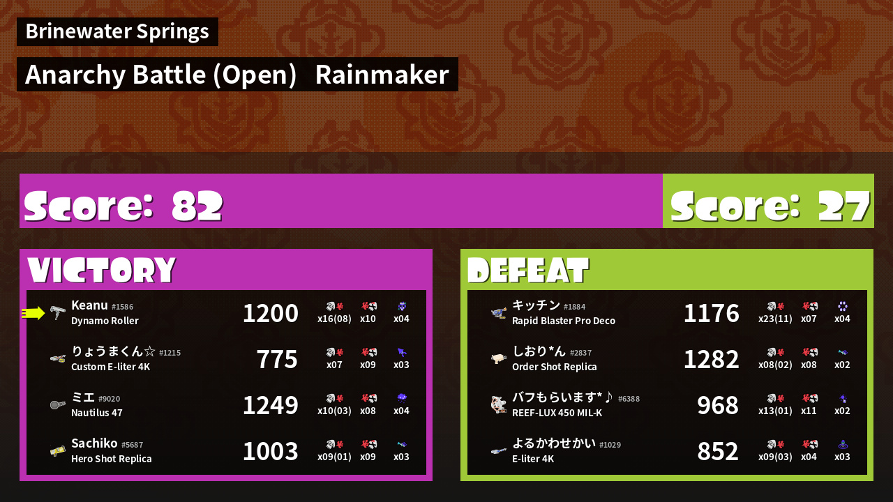 | Mode | Rainmaker - Anarchy Battle (Open) | ||