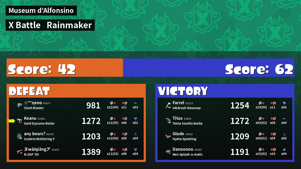 | Weapon | Gold Dynamo Roller ( Splat Bomb / Super Chump) | ||