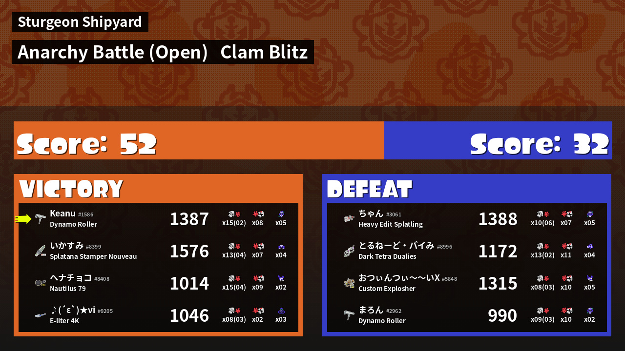 | Mode | Clam Blitz - Anarchy Battle (Open) | ||