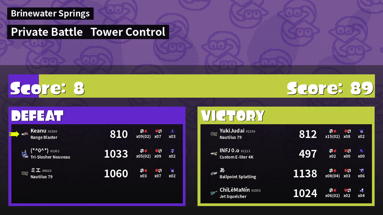 | Medals | #1 Overall Splatter #1 Enemy Splatter #1 Splat Assister | ||