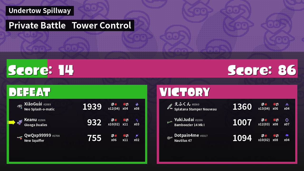 | Medals | #1 Enemy Splatter #1 Tower Stopper #1 Booyah Bomb User | ||