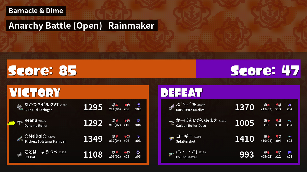 | Mode | Rainmaker - Anarchy Battle (Open) | ||