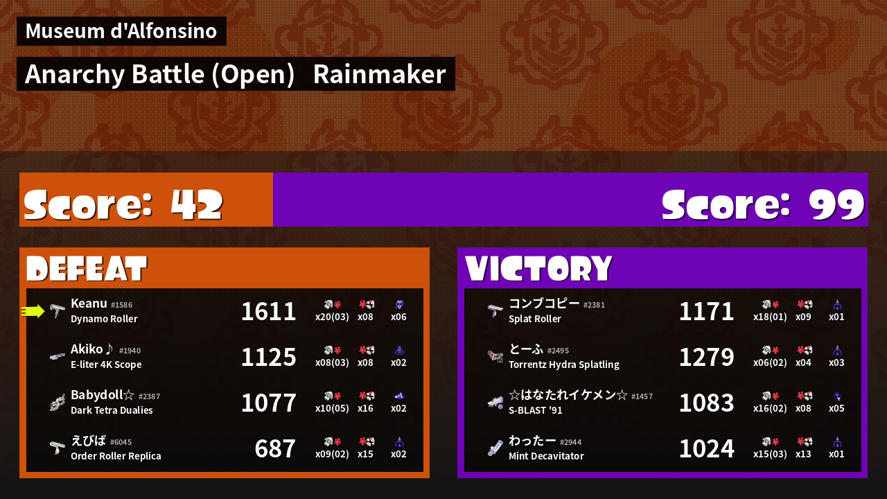 | Mode | Rainmaker - Anarchy Battle (Open) | ||