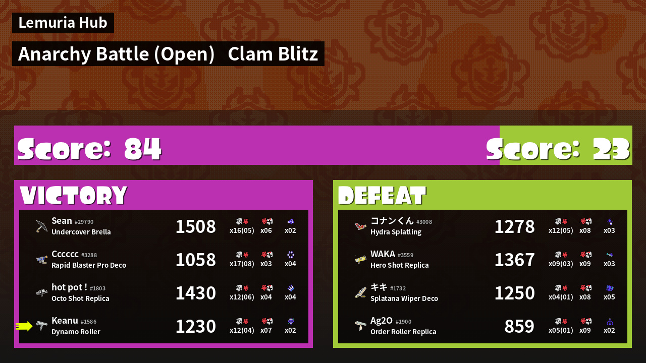 | Mode | Clam Blitz - Anarchy Battle (Open) | ||