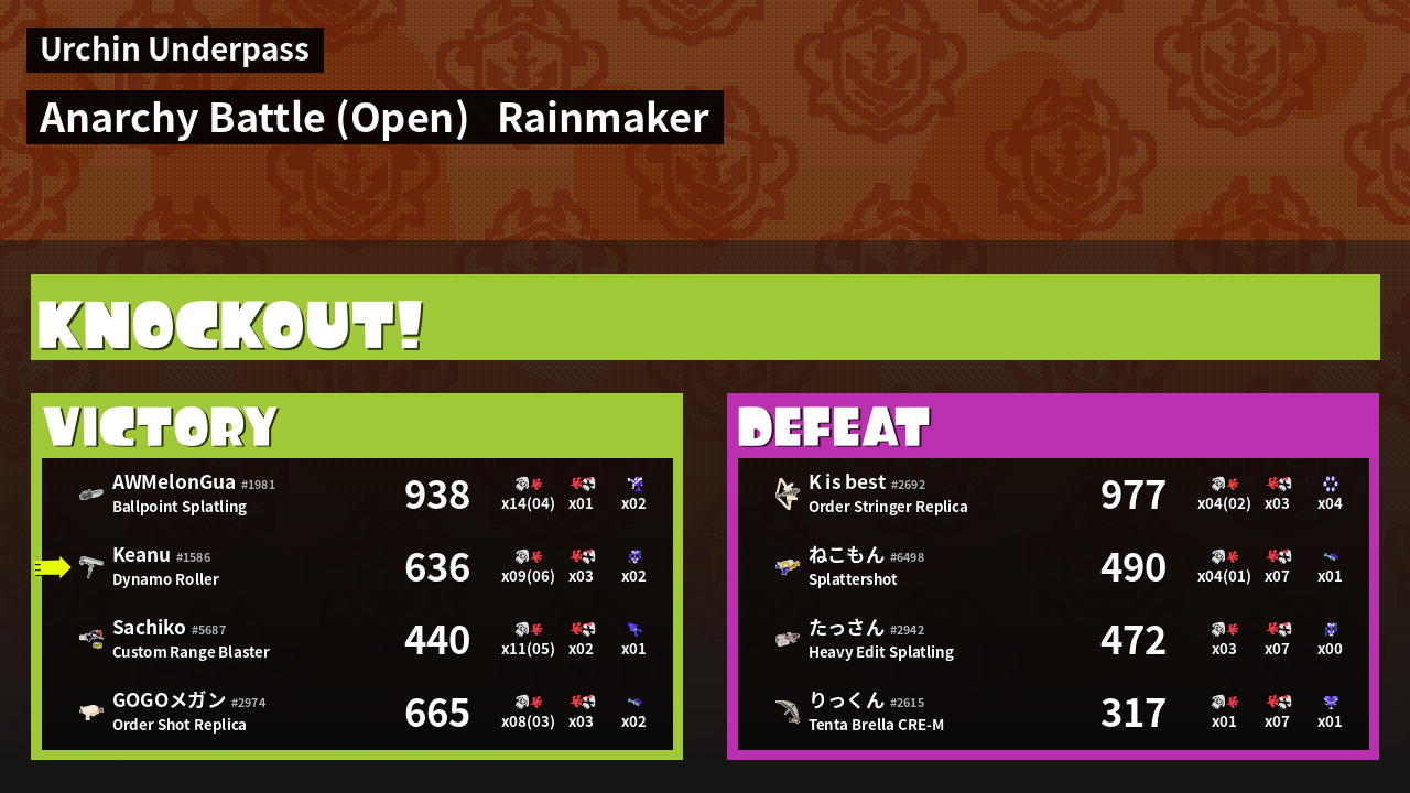 | Mode | Rainmaker - Anarchy Battle (Open) | ||