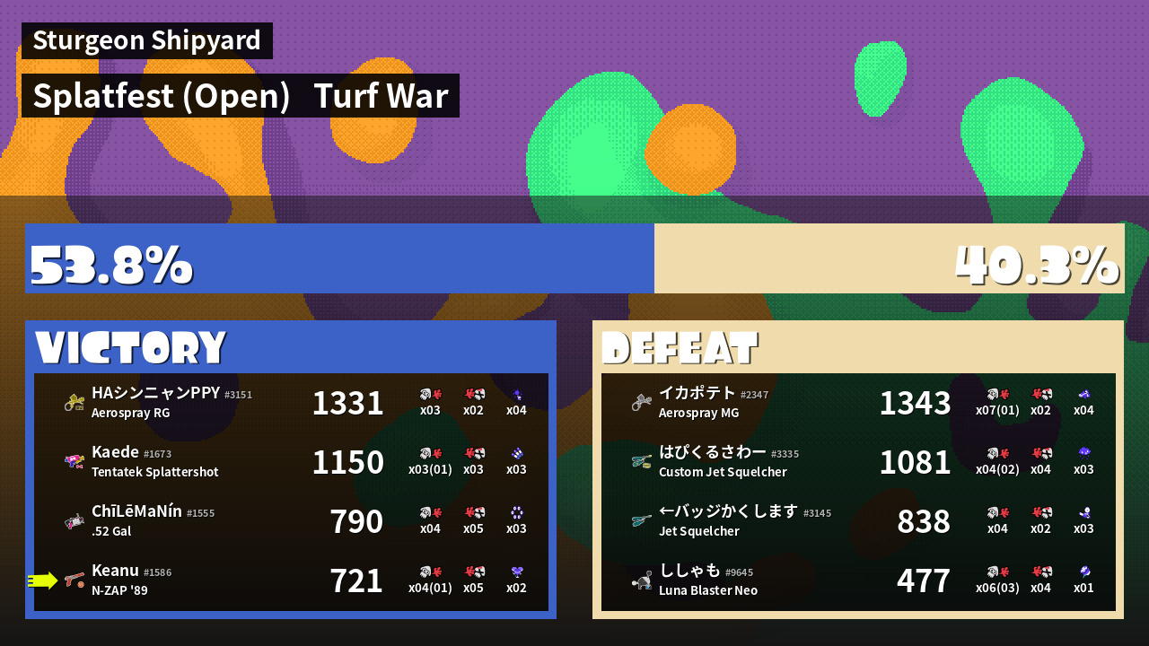 | Medals | #1 Overall Splatter #1 Popular Target #1 Enemy-Base Inker | ||