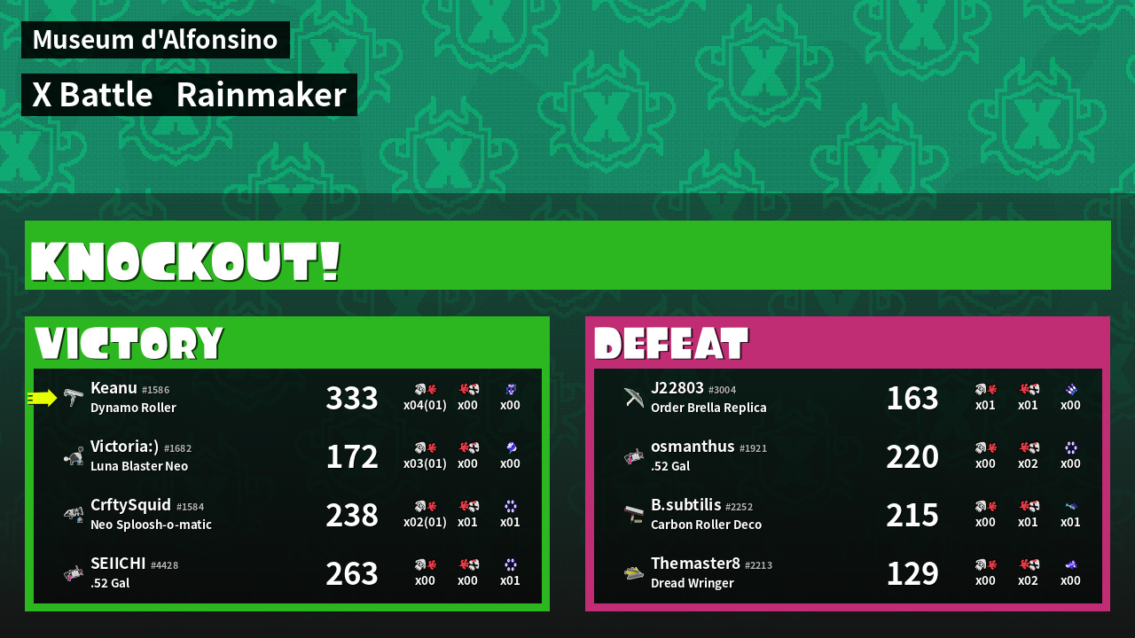 | Weapon | Dynamo Roller ( Sprinkler / Tacticooler) | ||