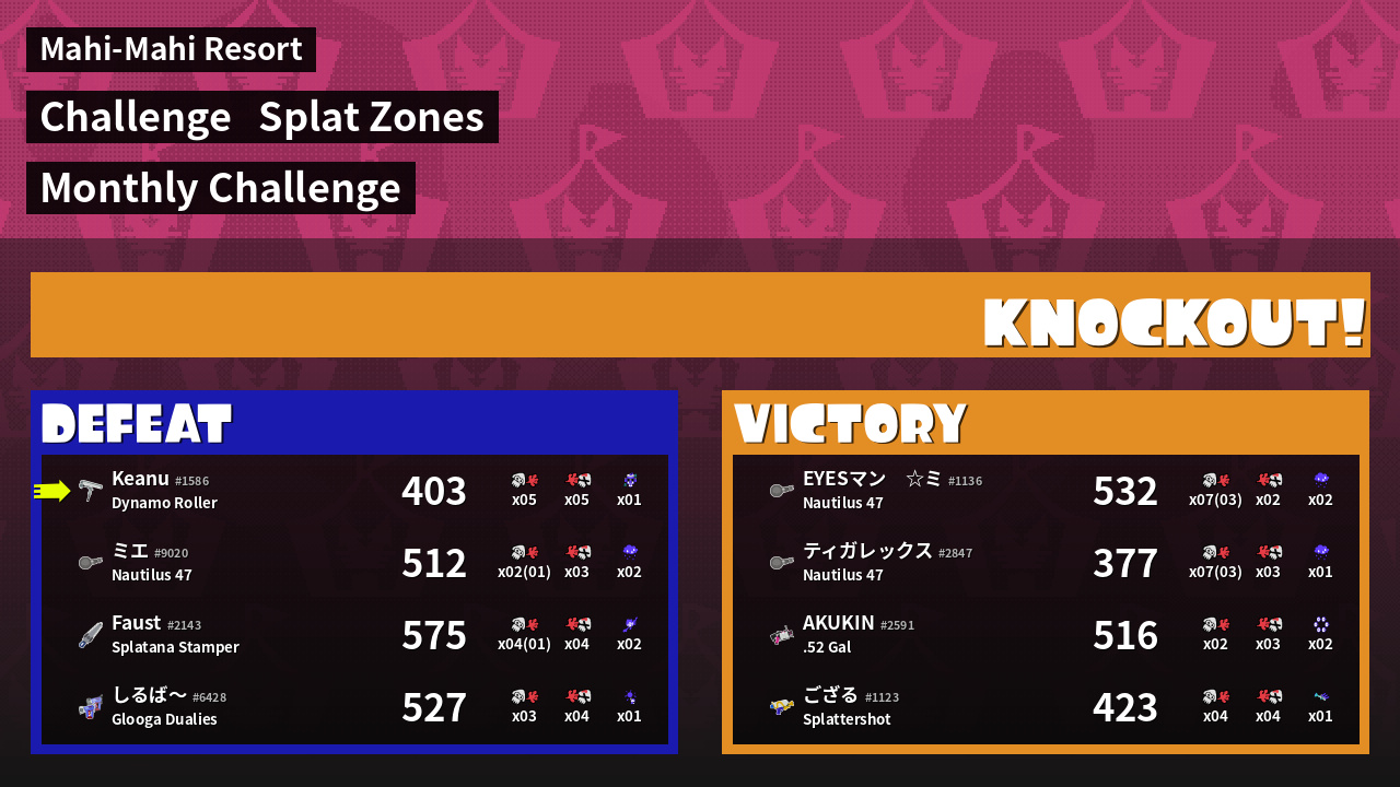 | Medals | #1 Overall Splatter #1 Splat Zone Guard #1 Popular Target | ||