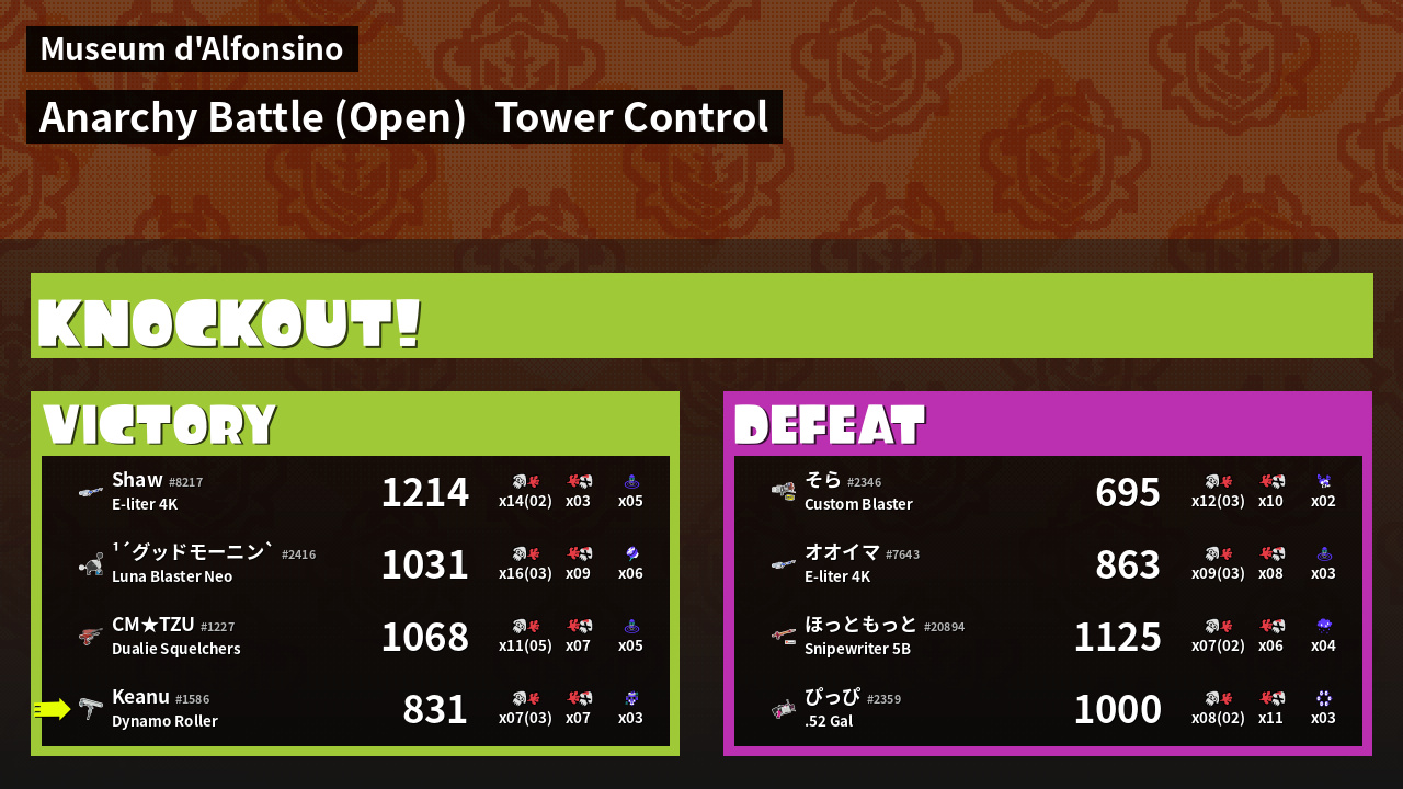 | Mode | Tower Control - Anarchy Battle (Open) | ||