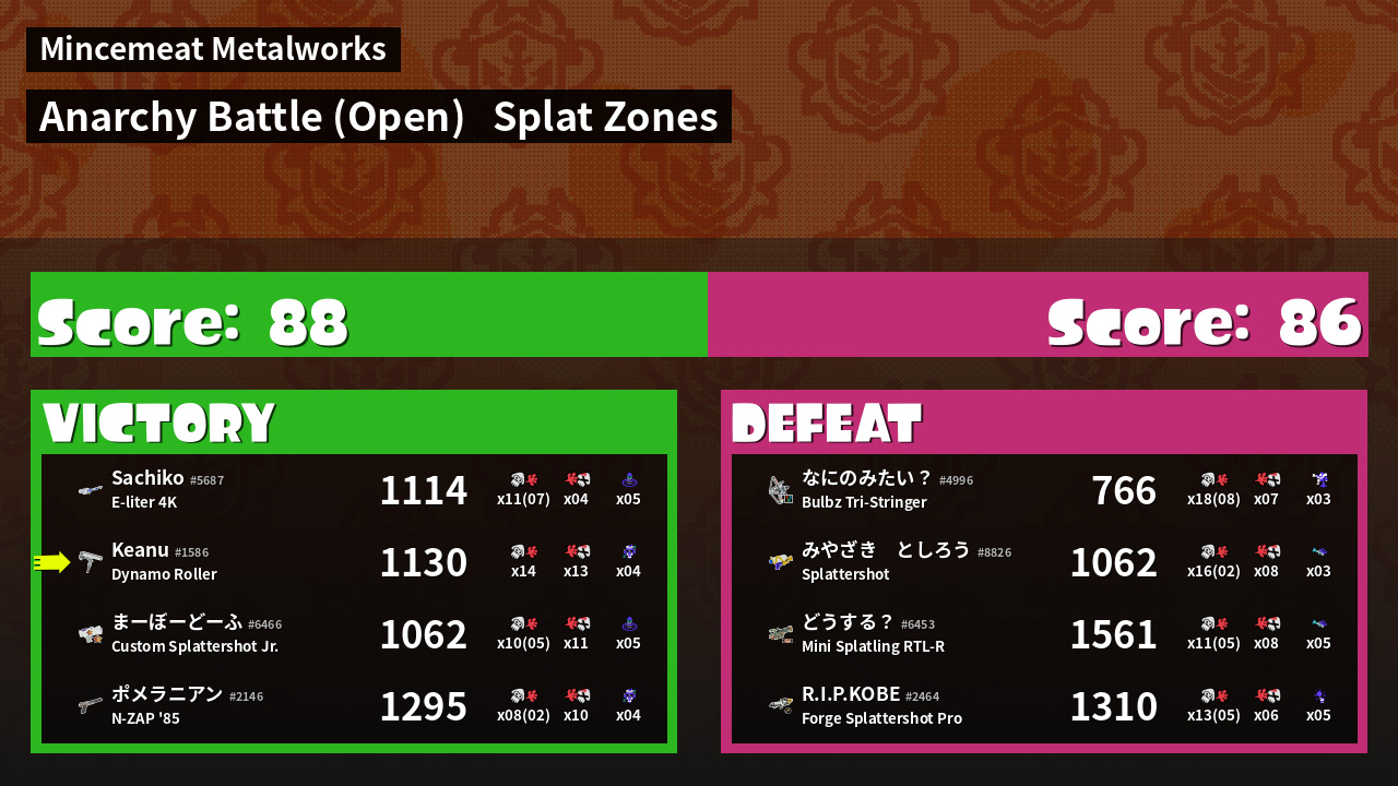 | Mode | Splat Zones - Anarchy Battle (Open) | ||