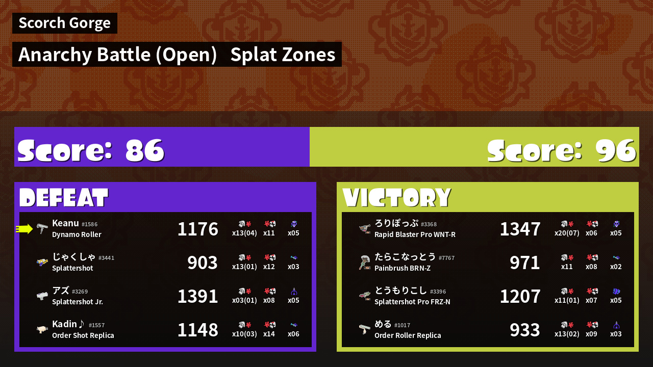 | Mode | Splat Zones - Anarchy Battle (Open) | ||