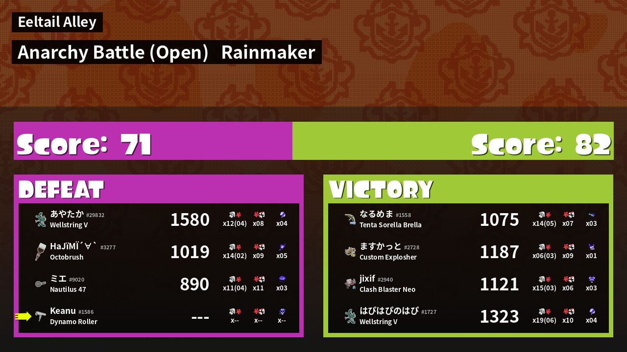 | Mode | Rainmaker - Anarchy Battle (Open) | ||