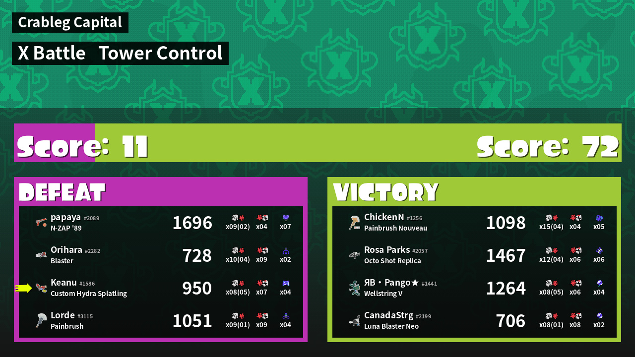 | Medals | Record-Score Setter #1 Splat Assister #1 Tower Stopper | ||