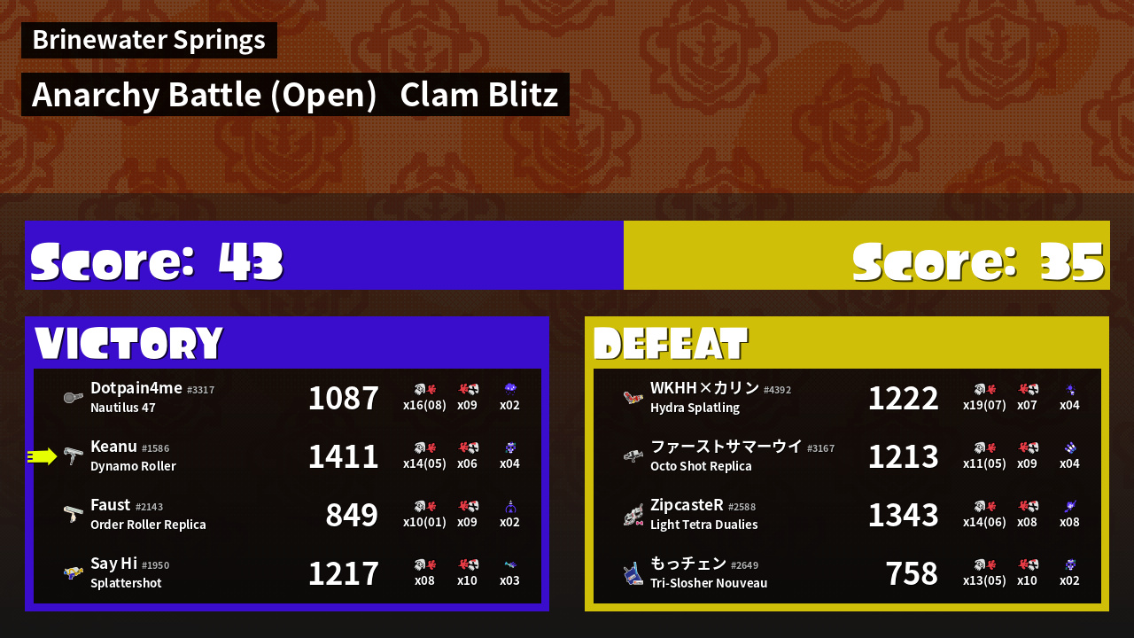 | Mode | Clam Blitz - Anarchy Battle (Open) | ||