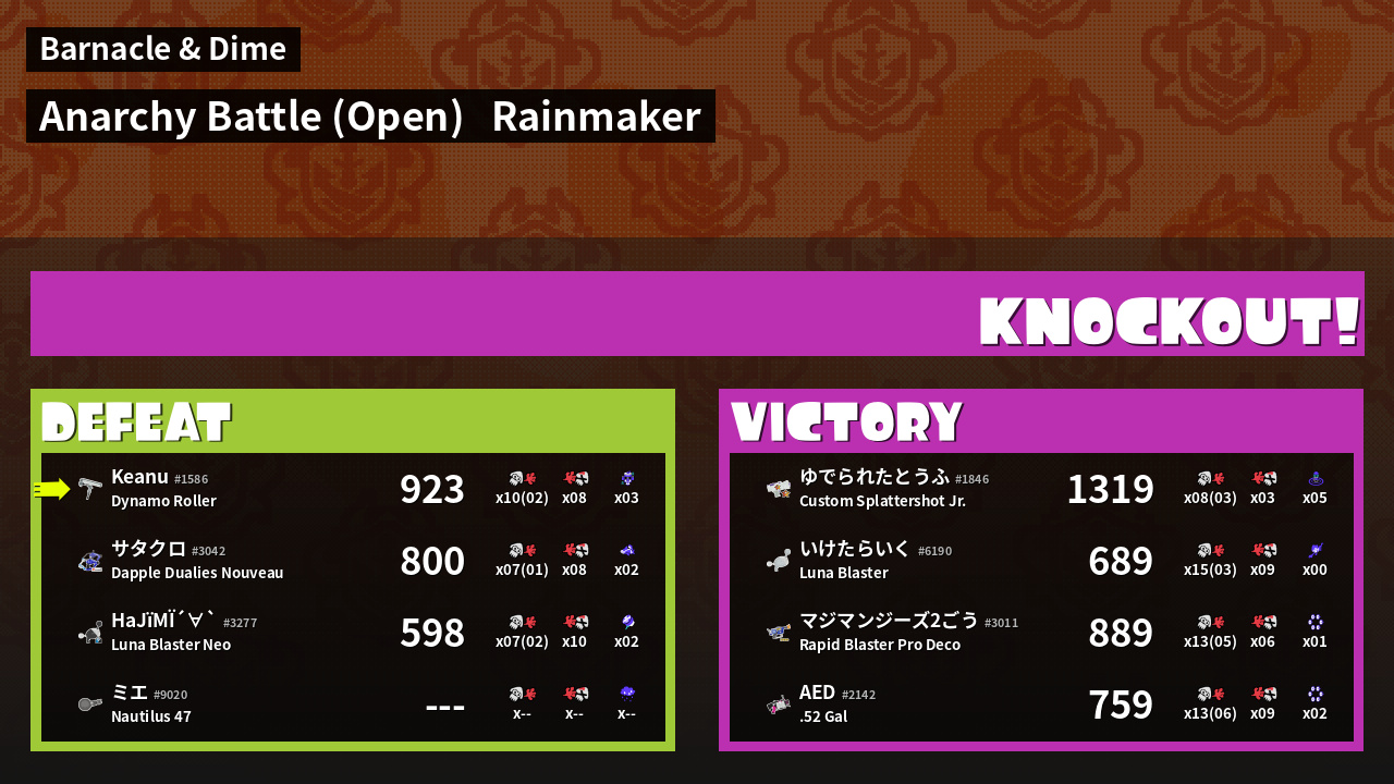 | Mode | Rainmaker - Anarchy Battle (Open) | ||