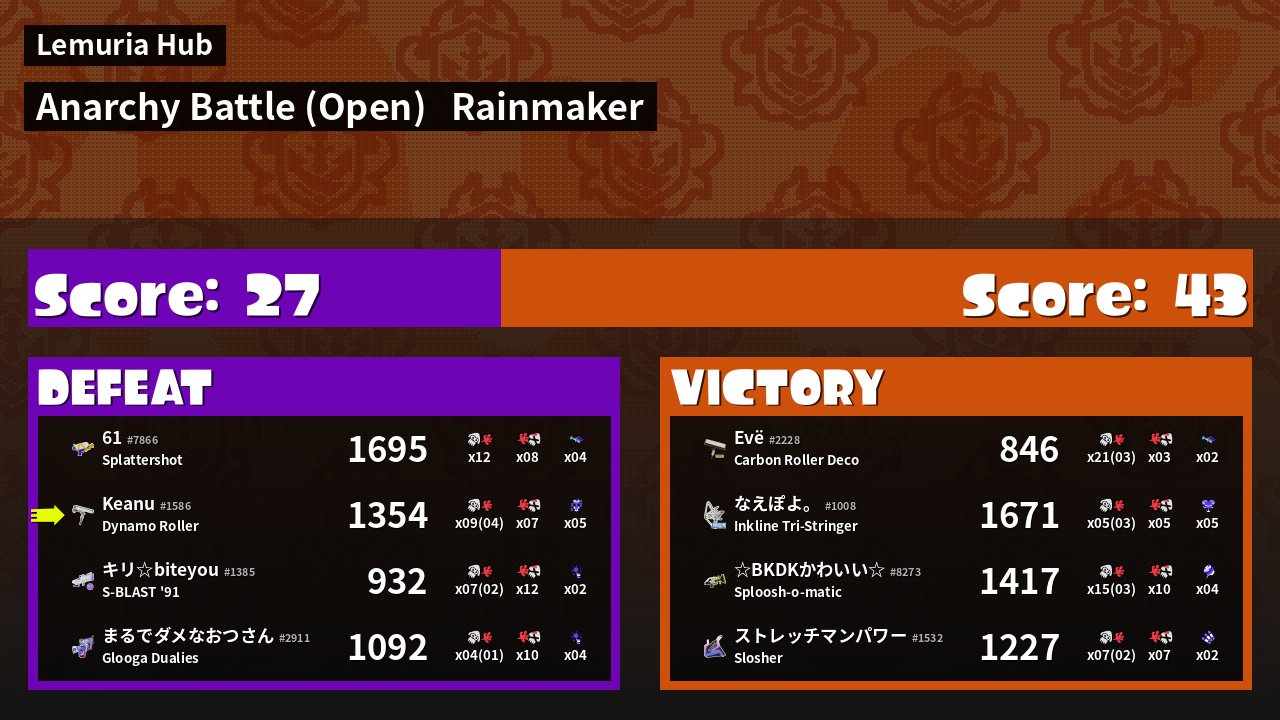 | Mode | Rainmaker - Anarchy Battle (Open) | ||
