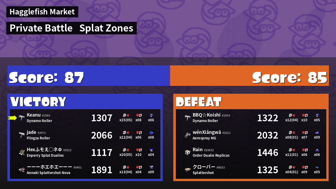 | Medals | #1 Overall Splatter #1 Splat Zone Guard #1 Enemy Splatter | ||