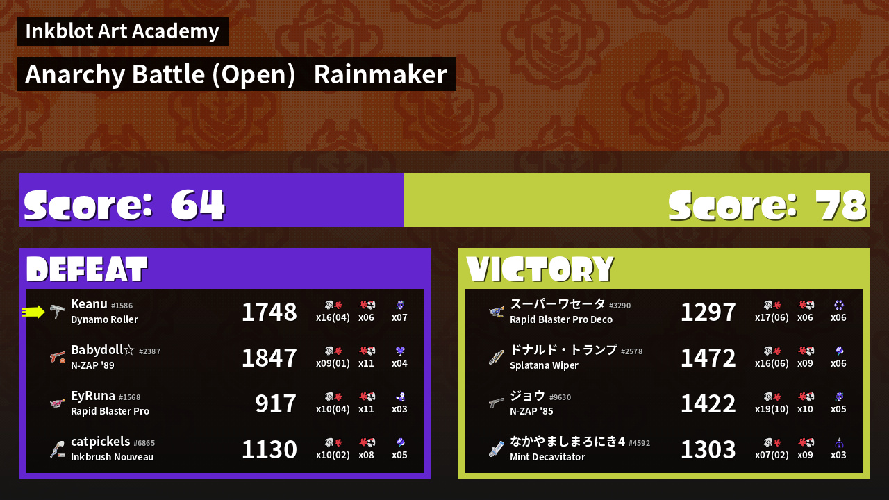 | Mode | Rainmaker - Anarchy Battle (Open) | ||