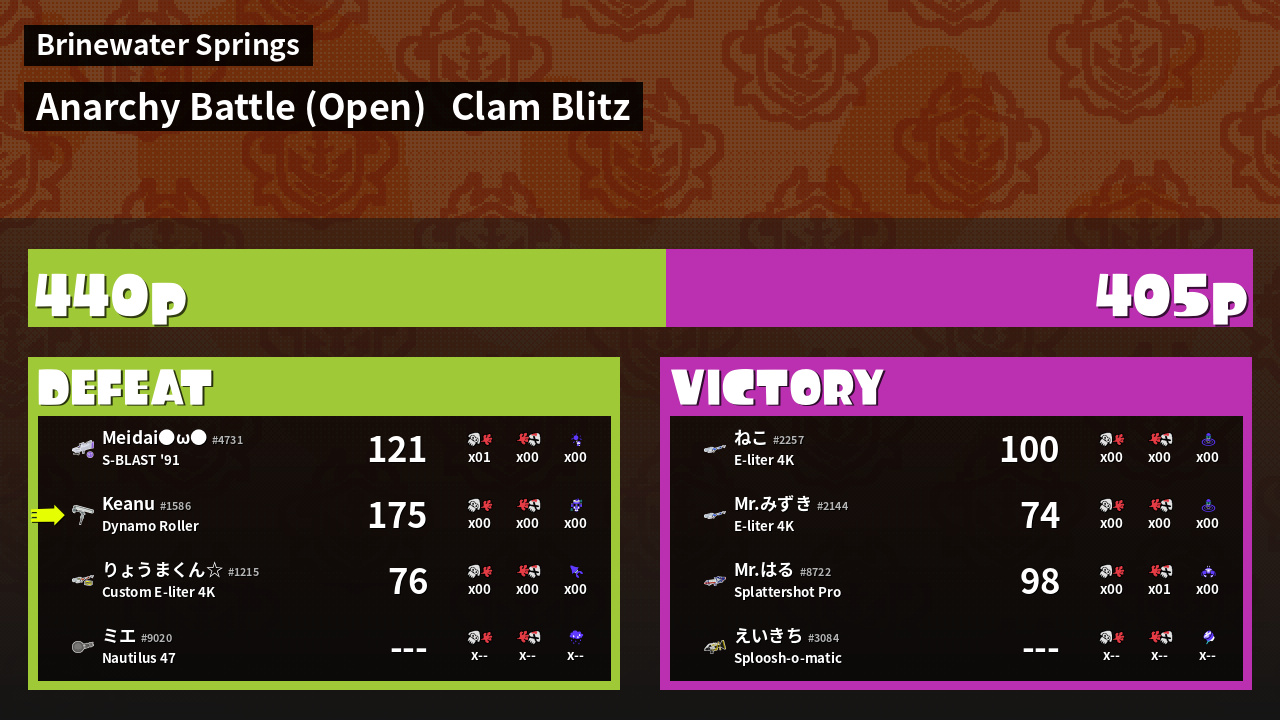 | Mode | Clam Blitz - Anarchy Battle (Open) | ||