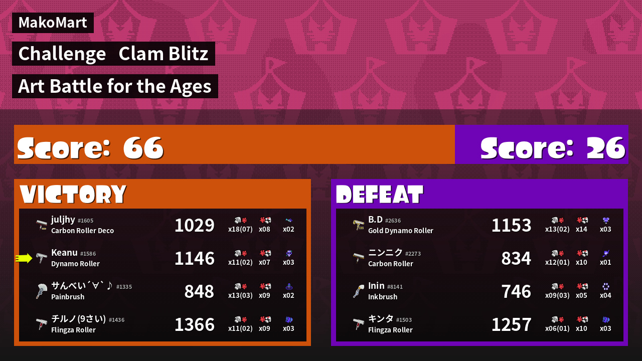 | Medals | #1 Score Booster #1 Clam Carrier #1 Ink Consumer | ||