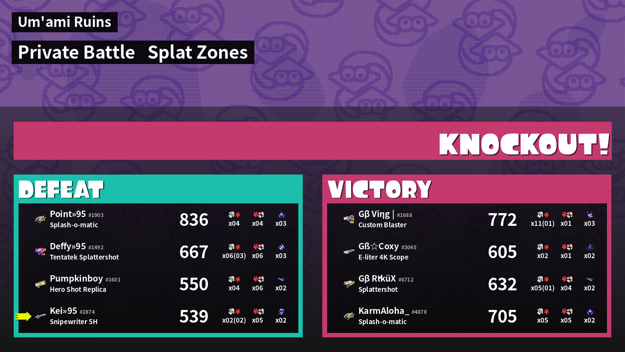 | Mode | Splat Zones - Private Battle | ||