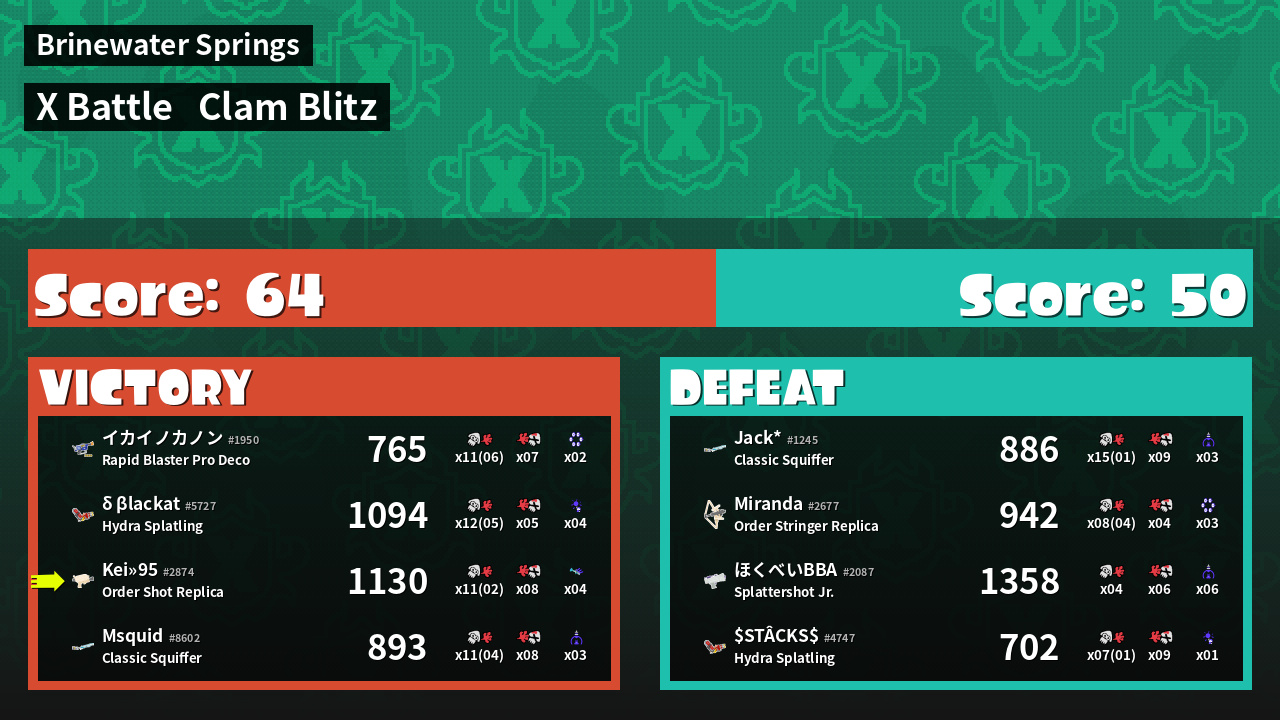 | Mode | Clam Blitz - X Battle | ||
