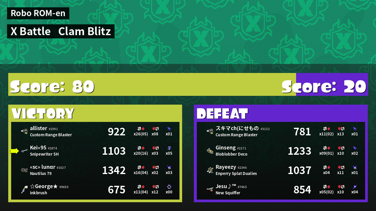 | Mode | Clam Blitz - X Battle | ||