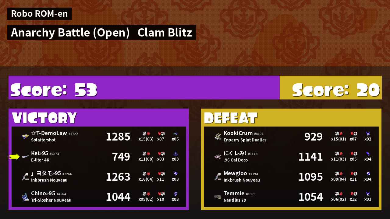 | Mode | Clam Blitz - Anarchy Battle (Open) | ||