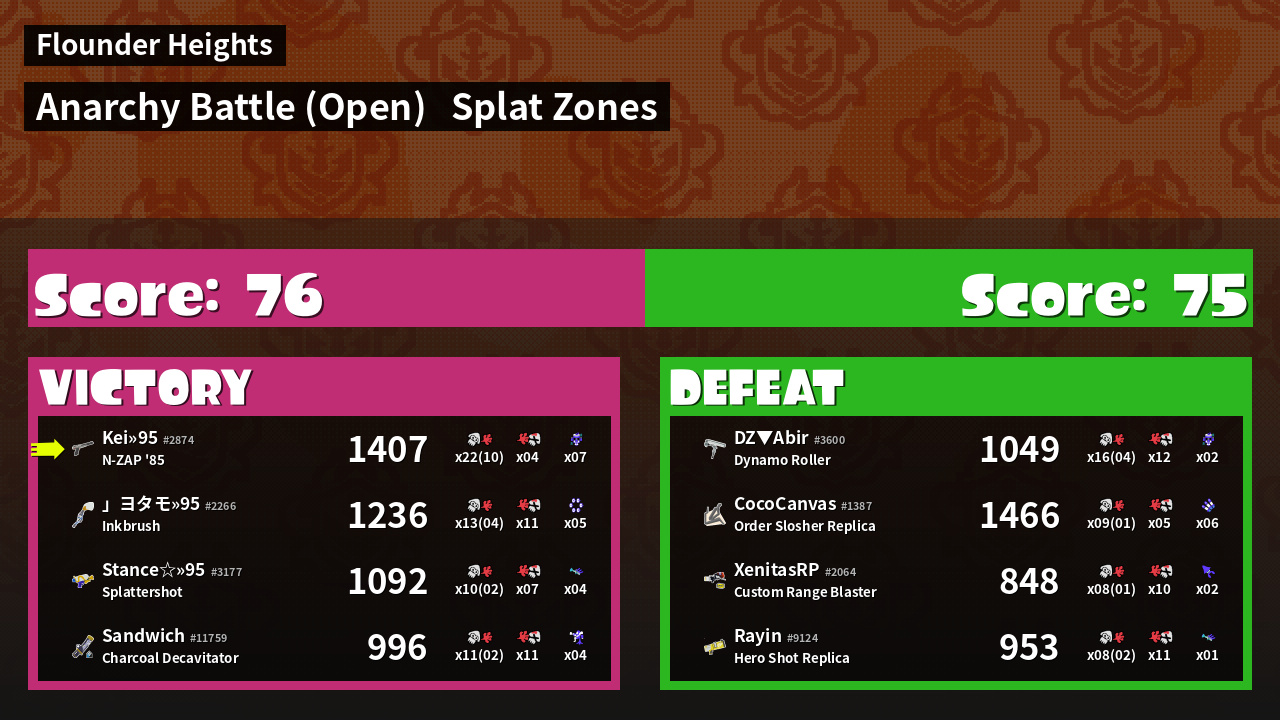 | Mode | Splat Zones - Anarchy Battle (Open) | ||
